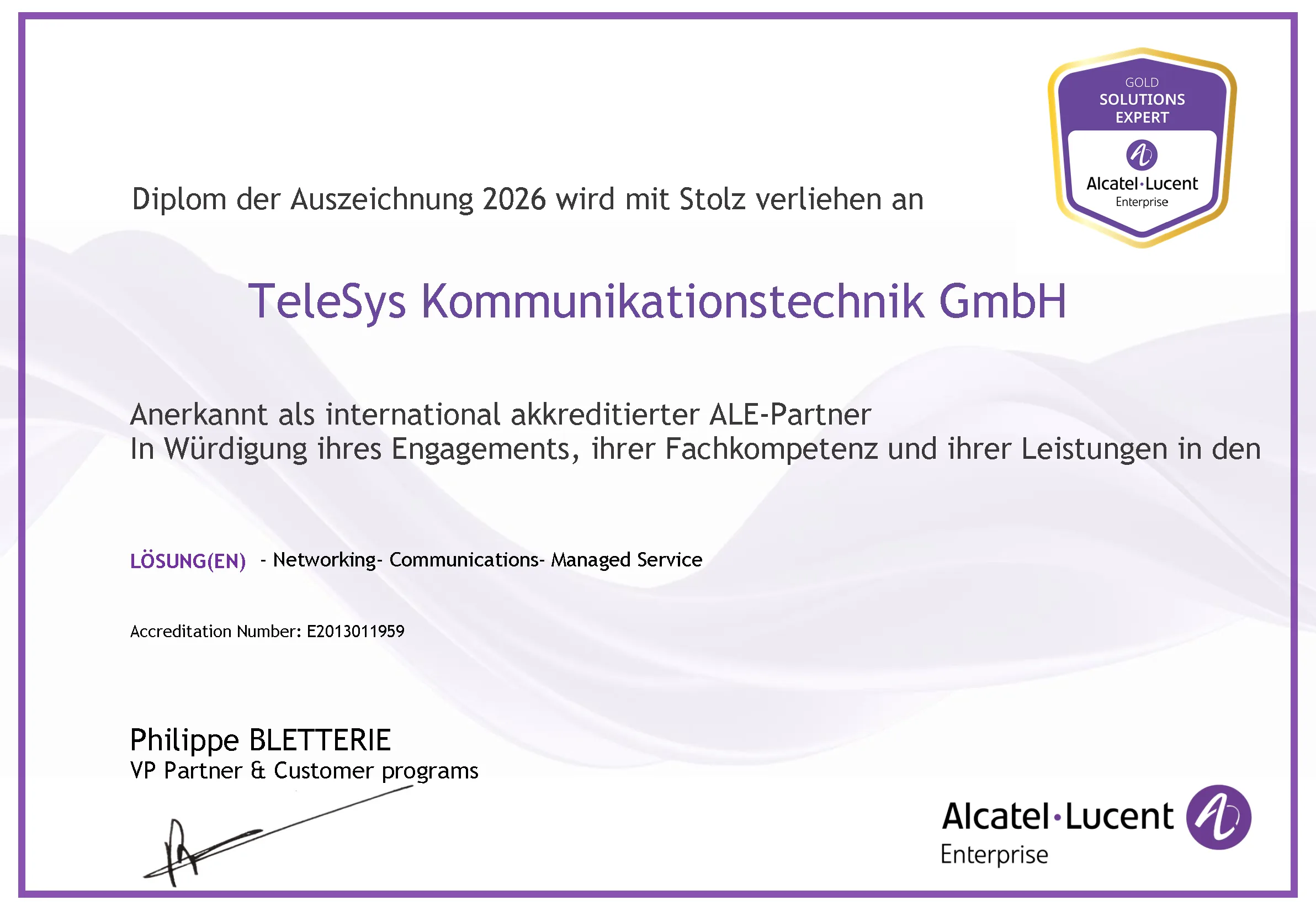 TeleSys ist zertifizierter Gold Solutions Expert von Alcatel-Lucent