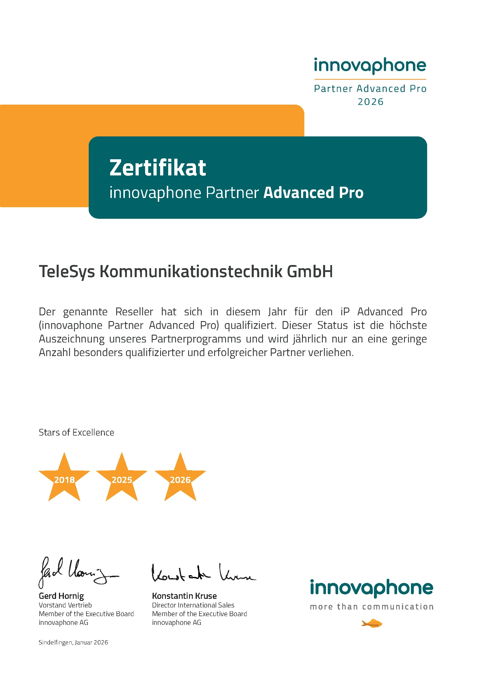 Als 3. stärkster Partner 2024 in Deutschland und aufgrund der erfolgreichen Projekte, hat uns innovaphone den höchsten Partnerstatus verliehen.